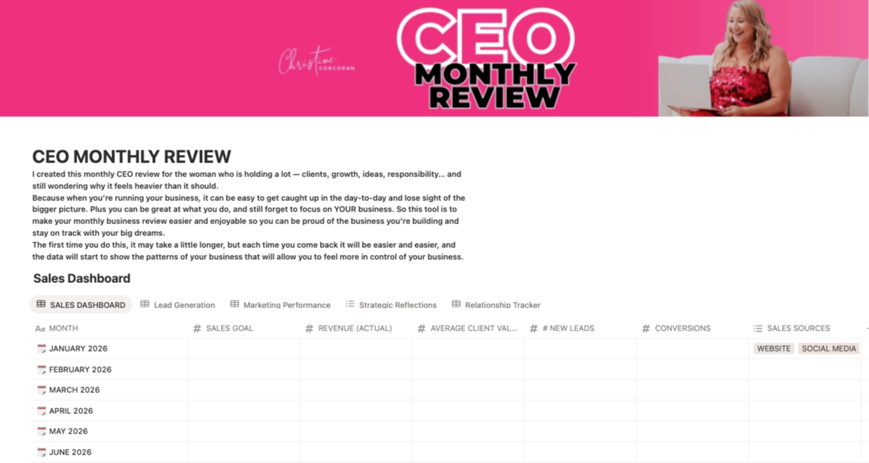 The Monthly CEO Review for Service-Based Business Owners Who Are Ready To Run Their Business Like a Badass CEO